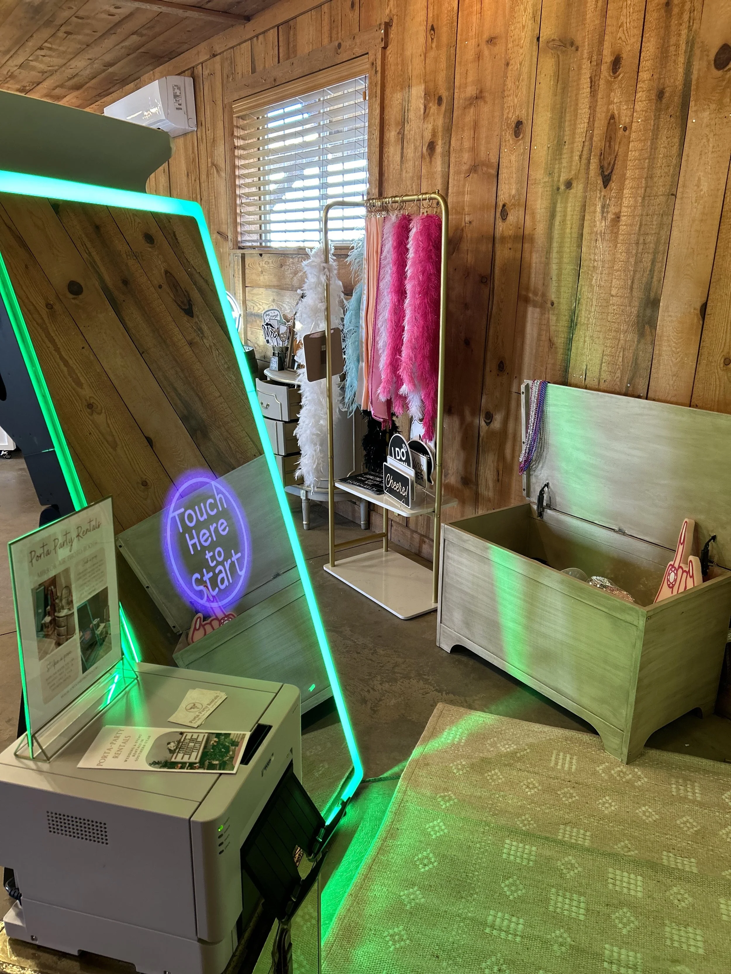 Our Mirror Air Photo Booth. This unique addition is sure to be a hit at an event. The Mirror Air Photo Booth combines the classic fun of a photo booth with a sleek and modern design. Guests can strike a pose, and the interactive mirror will guide them through the photo-taking process. With customizable templates and instant prints, it's the perfect way to capture and share memories. Your guests will love the combination of technology and nostalgia that the Mirror Air Photo Booth brings. It's a definite crowd-pleaser!