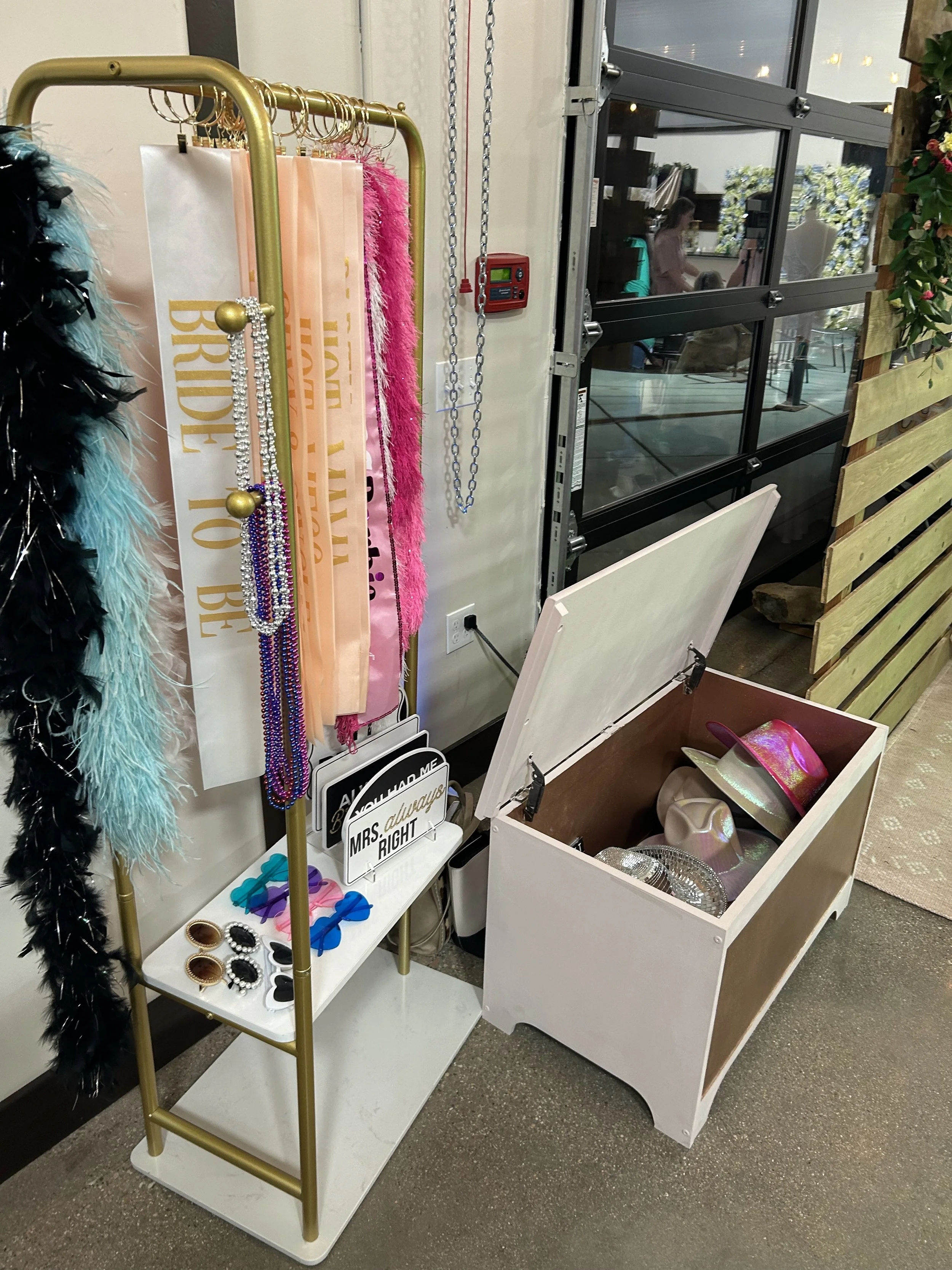 Backdrops like: floral wall, rustic wood, arches with balloons, or greenery wall.